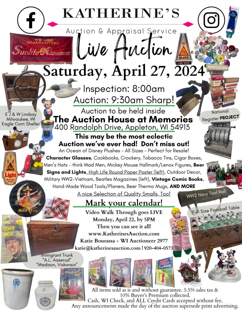 Whether you’re looking for Cartoon Collectibles, Breweriana, or Militaria, we’ve got that and SO MUCH MORE! Take a peek at the ad that will be hitting your mailbox, and Auction Action News soon!