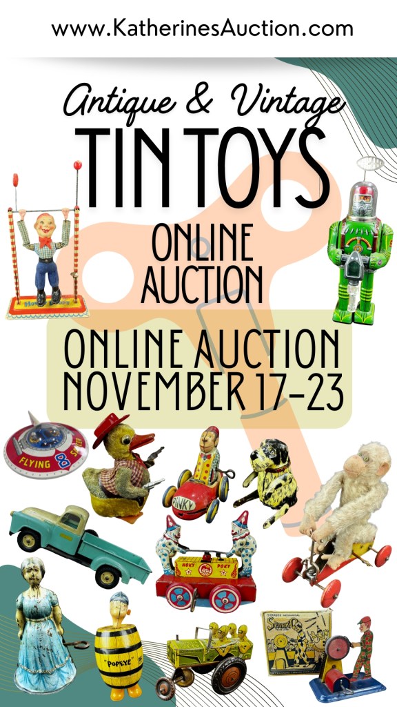 This jam-packed 200 lot Online Auction has many the Antique and Vintage Tin Toys you have always wanted! Bidding kicked off this morning at 7:30am and will continue through until 7:30pm Sunday November 23rd.
